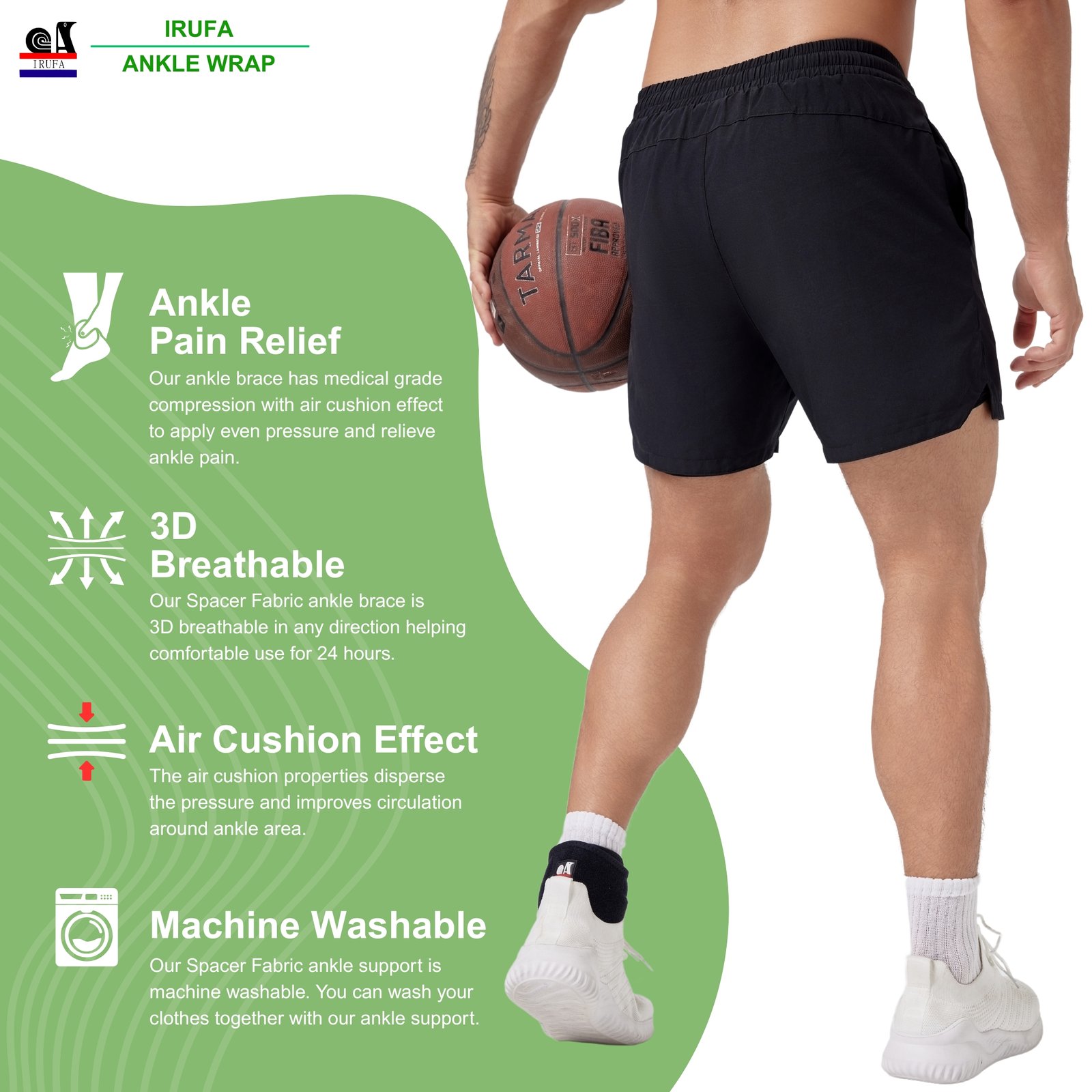 - 【Ankle Pain Relief】- IRUFA ankle brace has adjustable compression design with air cushion effect which helps to deliver targeted compression exactly where you need it to minimize swelling and promote faster healing. Ideal for pain relief from plantar fasciitis, sprains, swelling, arthritis, achilles tendon heel, minor ankle injuries and more.