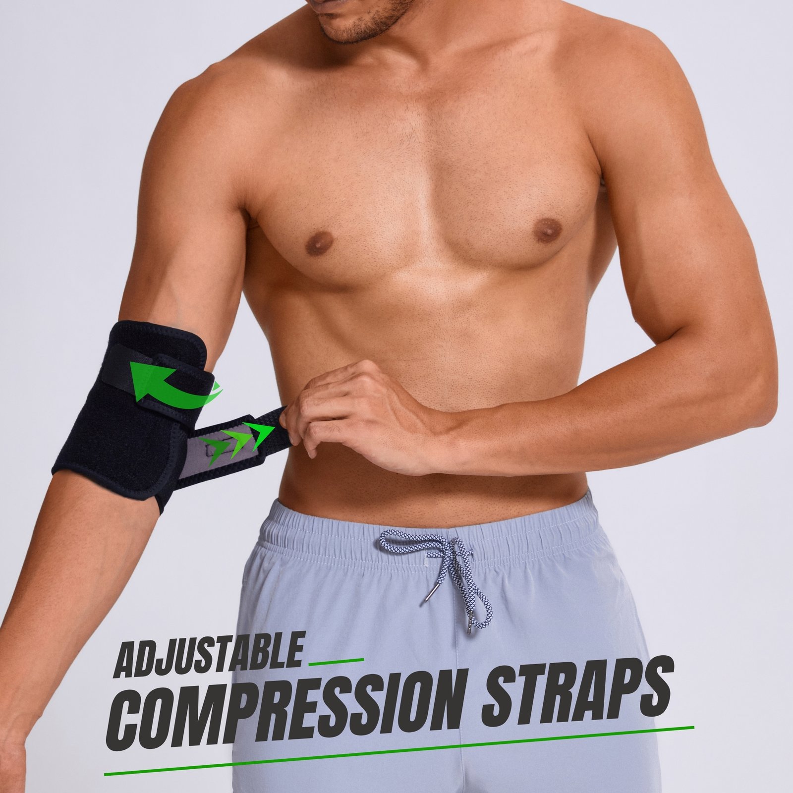 - 【Adjustable Compression Sleeve】- Our elbow support provides dual adjustable compression straps featuring broad hook strapping that attaches anywhere along the outer surface. The elbow brace helps to customized your compression and adjustable tightness for excellent support.