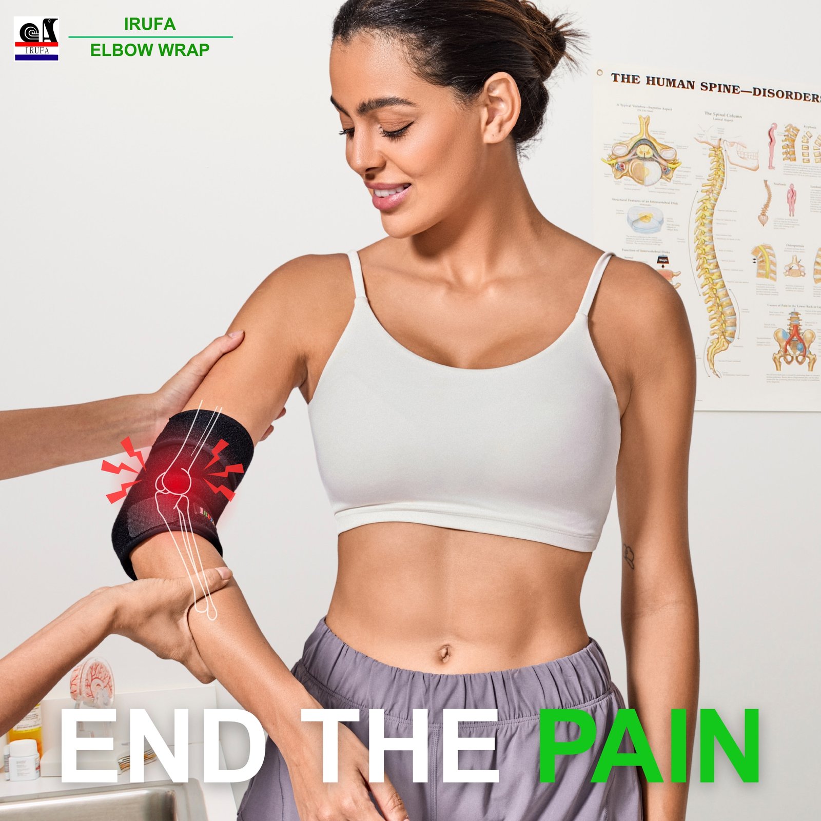 - 【Relieving Elbow Pain & Discomfort】- IRUFA elbow brace has adjustable compression with air cushion effect to apply even pressure across your elbow joint which perfectly conforms to and supports your weak or injured elbow joint and boosts your blood circulation significantly. Oue elbow wrap helps to relieve symptoms of joint inflammation, tendonitis, tennis elbow, golf elbow, and other kinds of elbow pain.