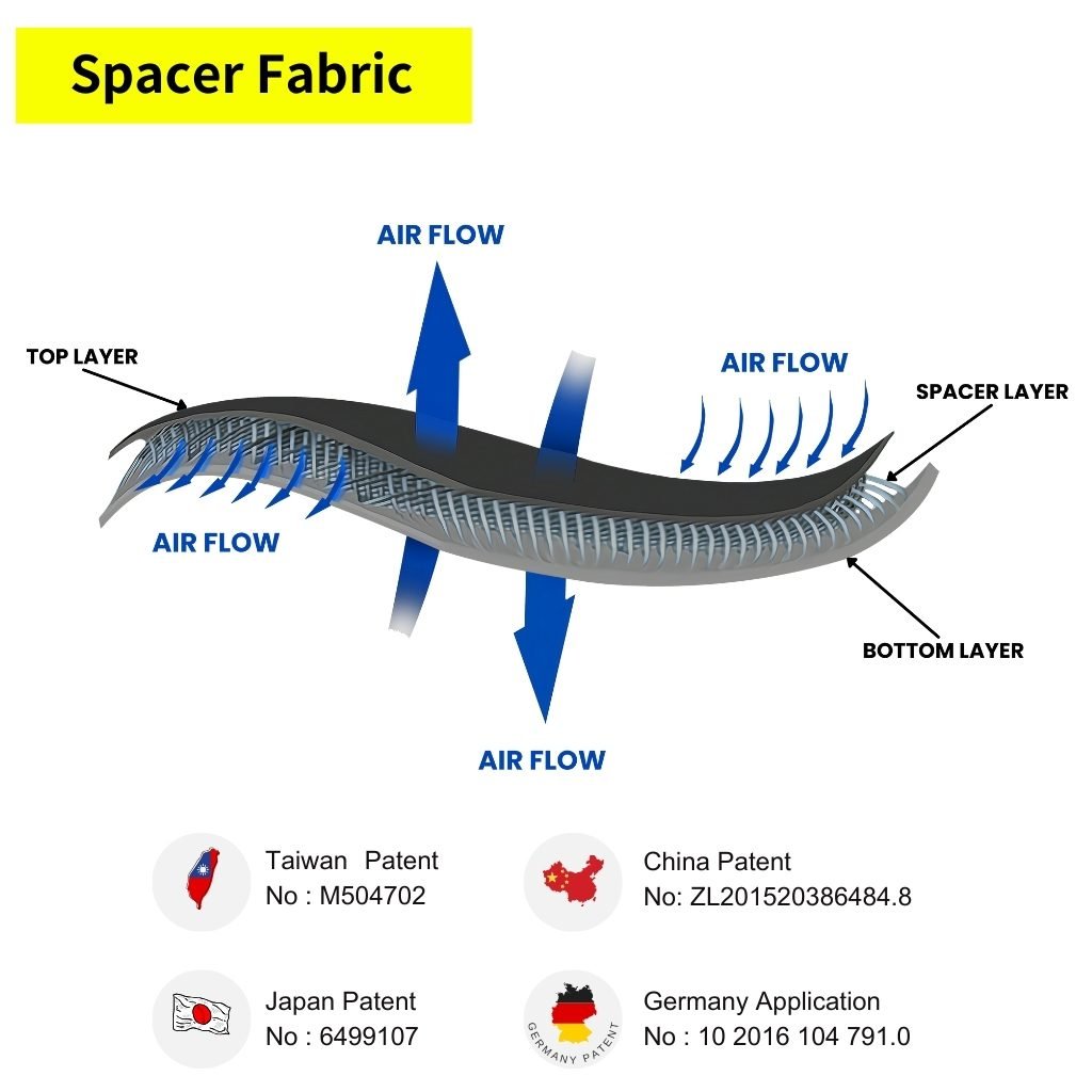 Spacer Fabric is 3D breathable, Air Cushion Effect, Machine Washable,24 Hours Use, No Smell, Latex Free, Hypo-Allergenic, Soft Touch, Durable, Light Weight, Easy to Recycle, Anti-Pilling and Quick Dry.
